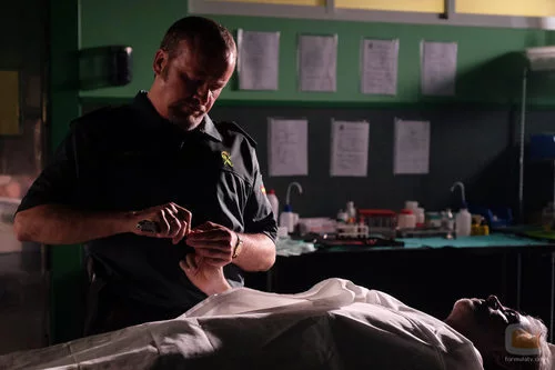(01x07) Luis, interpretado por Fernando Cayo, es el alferez de la Guardia Civil. Está mirando las uñas para luego examinarlas, del cuerpo sin vida de Amancio