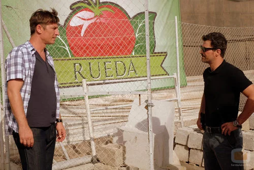 (1x05) El capataz de Juan Rueda habla con el sargento de la Guardia Civil (Rodolfo Sancho) en las afueras de la empresa de los Rueda