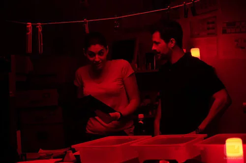 (08x01) Héctor (Rodolfo Sancho) y Lola (Nya de la Rubia) se encuentran en una sala de revelado fotográfico analógico en busca de nuevas pistas sobre la aparición de un brazo