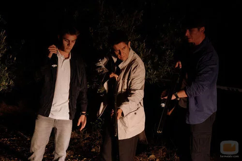 Juan Rueda con una pistola y sus acompañantes en 'Mar de plástico'