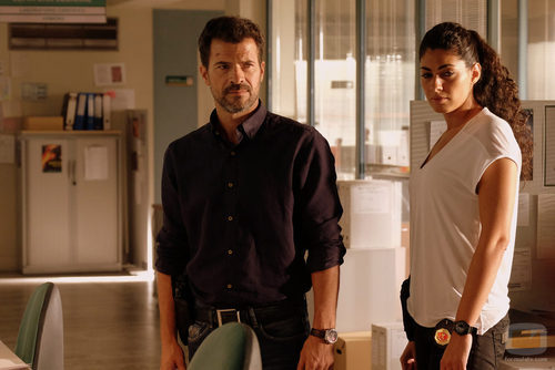 (1x03) Lola (Nya de la Rubia) se encuentra con Héctor (Rodolfo Sancho) en la comisaría de la Guardia Civil en Campoamargo.