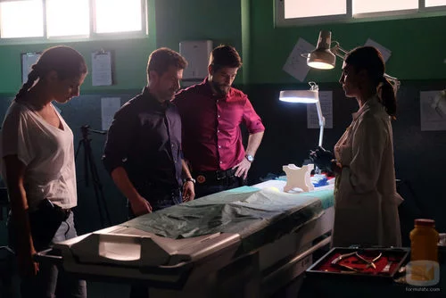 (08x01) Lola (Nya de la Rubia), Salva (Luis Fernández) y Héctor (Rodolfo Sancho), se encuentran reunidos con la forense para que le de nuevas pistas