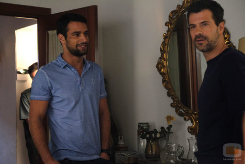 (1x05) Lucas (Jesús Castro) y el sargento de la Guardia Civil se encuentran en una pequeña viviendo recopilando información sobre el asesinato de Ainhoa.