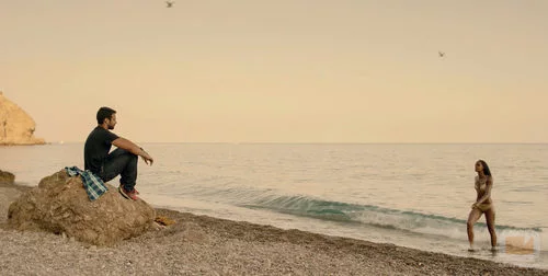 (1x01) Lucas (Jesús Castro), sentado en la arena, observa como Fara (Yaima Ramos) sale de la playa y disfruta de un momento de tranquilidad.