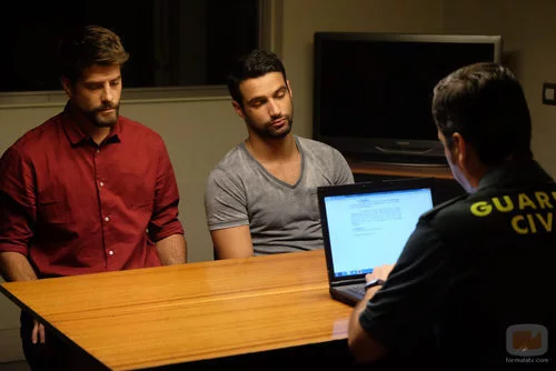 (08x01) Lucas (Jesús Castro) y Salva (Luis Fernández) están en la sala de interrogatorios de la Guardia Civil a la espera de ser interrogados