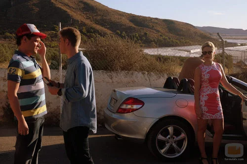 (01x11) Fernando Rueda (Patrick Criado) habla tímidamente a su hermano, Sergio (Federico Aguado) bajo la mirada de Agneska (Lisi Linder)