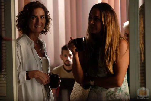 (08x01) Marta (Belén López) está con una amiga tranquilamente tomando café en el trabajo en un pequeño descanso.