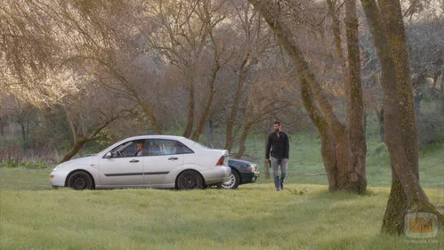Ruben Cortada interpreta a Faruq, andando por un bosque cerca de dos coches en el sexto capítulo de la segunda temporada de 'El Príncipe'.