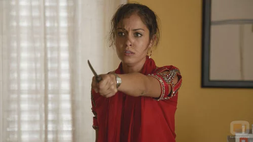 Hiba Abouk interpreta a Fátima que en el sexto capítulo de la segunda temporada de 'El príncipe' amenaza a Khaled con un cuchillo.