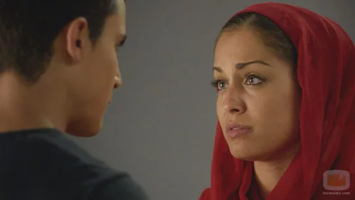 Fátima (Hiba Abouk) y Morey (Álex González) hablan durante el quinto capítulo de la segunda temporada de 'El Príncipe'.