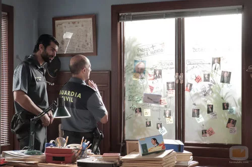 (1x02) Olmos (Pepe Viyuela) y Robles (Rubén Cortada) analizan los datos que tienen de la investigación.