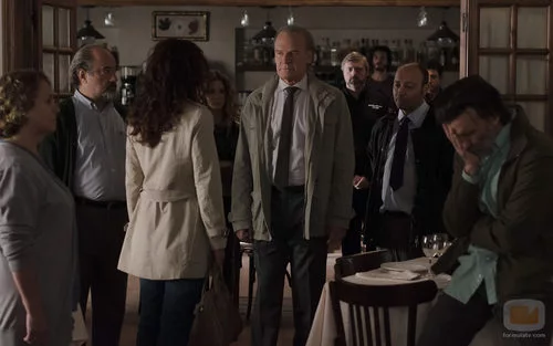 El comisario Casas acude al bar de la familia Vega para encararse con Begoña Valderve, mujer de Andrés Vega.