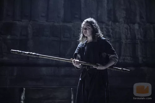 (6x03) Arya Stark (Maisie Williams) la menor de las hijas de Lord Eddard y Lady Catelyn, aparece con un con una vara entre sus manos en el capítulo 3 de la sexta temporada de 'Juego de tronos'.