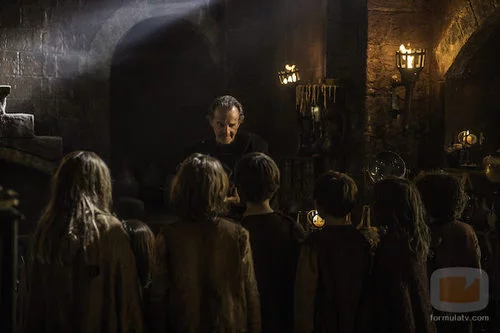 (6x03) Qyburn (Anton Lesser) aparece mirando a un grupo de niños en en el capítulo 3 de la sexta temporada de 'Juego de tronos'.