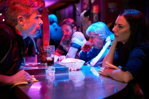 Coque (Nacho Guerreros) y Yoli (Miren Ibarguren) charlan en La cueva de Coque en el 11x11 de 'La que se avecina'.