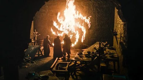 Edd, Beric y Tormund se encuentran con el siniestro símbolo de los Caminantes Blancos en el centro del cual se está incinerando Ned Umber.