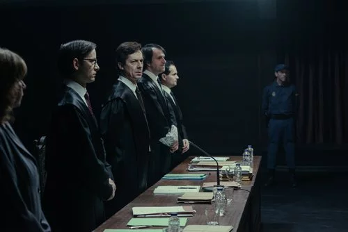 Los jueces encargados de decidir el futuro de los narcotraficantes gallegos en el juicio realizado en la Casa de Campo en el último capítulo de Fariña.