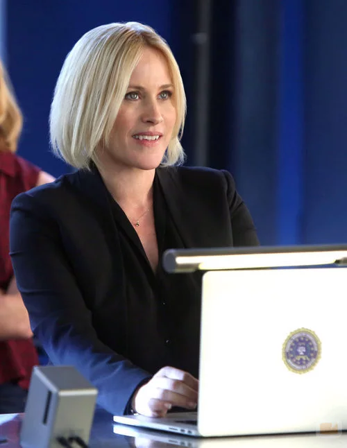 (1x01) La doctora Avery Ryan sonríe mientras teclea en su ordenador en el primer capítulo de la primera temporada de 'CSI: Cyber'