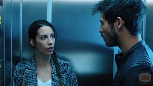 (1x06) Bárbara (Almudena Cid) se siente muy incomodada por el comisario Santa (Diego Martínez) en una conversación en el ascensor