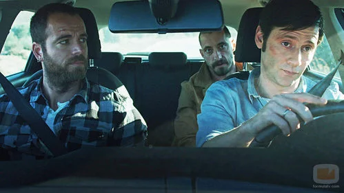 (1x02) Suso (Carles Francino), Crespo (Ismael Martínez) y Diego (Fran Nortes) están en un coche intentando solucionar los problemas