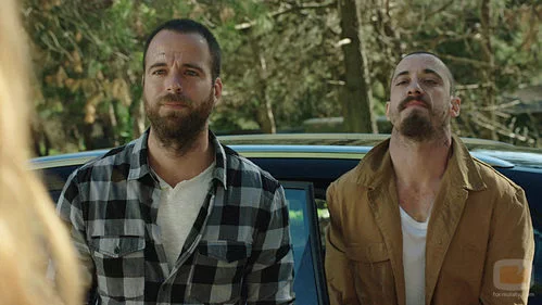 (1X02) Crespo (Ismael Martinez) y Suso (Carles Francino) miran enfrente. No se sabe muy bien a que están mirando, pero les esta sorprendiendo.