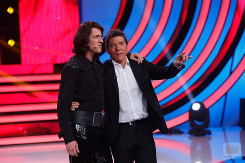 El presentador del talent show más exitoso de Atresmedia, Manel Fuentes, junto a Edu Soto imitando a Camilo Sesto.