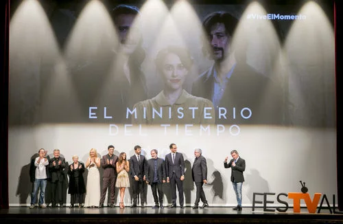 Actores de 'El Ministerio del Tiempo' con Javier Olivares en el escenario del FesTVal de Vitoria