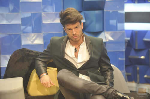El DJ italiano, tras la expulsión de la concursante Ares Teisidó, sentado en el sofá del Confesionario dispuesto a nominar.