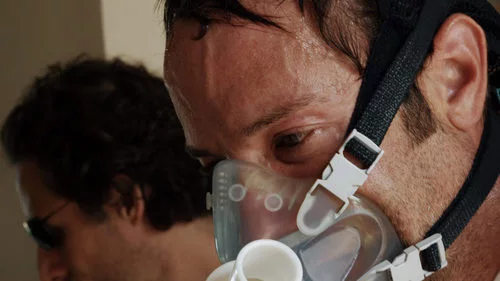 Bryan Fogel con una máscara en la cara durante el rodaje del documental de Netflix sobre el dopaje deportivo 'Ícaro'.