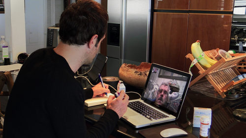 Bryan Fogel habla a través del ordenador con el científico Grigory Rodchenko en el documental sobre el dopaje 'Ícaro'.