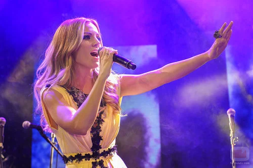 Edurne cantando ante los eurofans en la Welcome Party en el Euroclub de Viena el mismo día de los ensayos del 'Festival de Eurovisión 2015'.