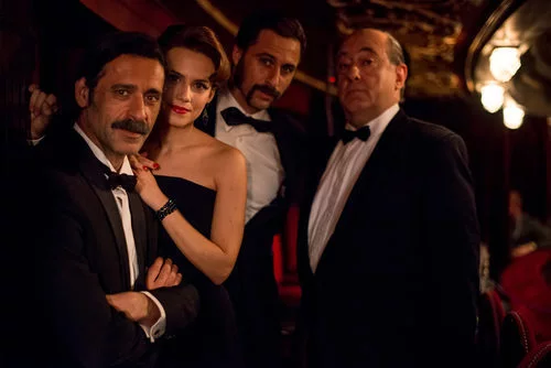 Los personajes protagonistas del primer episodio de la tercera temporada de 'El Ministerio del Tiempo', Amelia Folch (Aura Garrido), Alonso de Entrerríos (Nacho Fresneda), Pacino (Hugo Silva) y Alfred Hitchcock (José Ángel Egido).