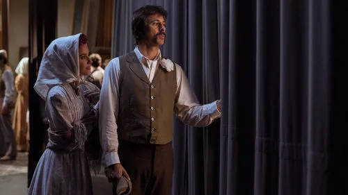 Lola y Pacino vigilan desde las cortinas del teatro en el capítulo 32 de 'El Ministerio del Tiempo'