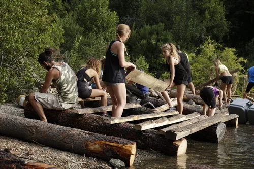 Los concursantes de 'El puente' emplean troncos para la construcción
