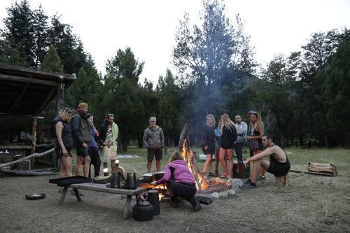 Los concursantes de 'El puente', el reality de Movistar+ presentado por Paula Vázquez, haciendo una hoguera para poder cocinar.