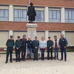 Pepe Viyuela y Blanca Portillo con el equipo de 'Ellas' y agentes de la Guardia Civil