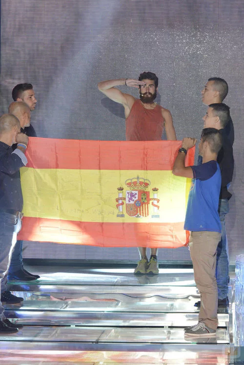 El tercer finalista de 'Supervivientes 2015', Rubén López, ante la bandera de España