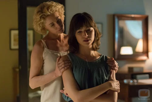(1x07) Claudia (Belén rueda) consuela a Esther (Úrsula Corberó) tras haber sufrido una serie de decepciones y se siente perdida en 'La Embajada'.