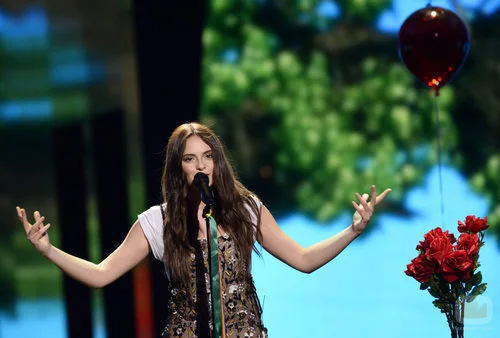 La joven italiana Francesca Michielin, durante su actuación en Eurovisión 2016 con la canción "No Degree Of Separation"