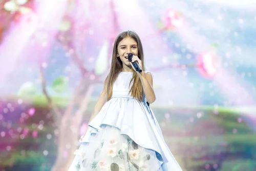 Ana Kodra interpreta "Mos ma prekni pemën" ("No toques mi árbol") sobre el escenario de Eurovisión Junior 2017 como representante de Polonia.