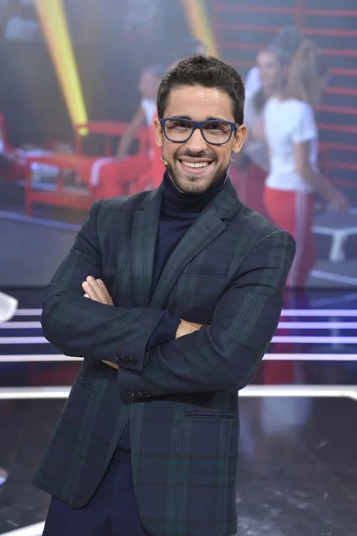 El periodista Miguel Frigenti posa ante la cámara con una chaqueta de cuadros en el plató del primer debate de 'GH Revolution'.