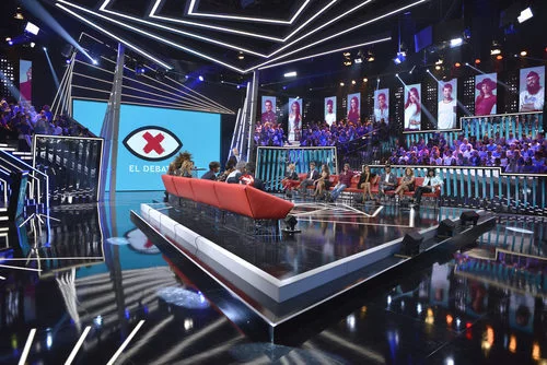 Plató de 'GH Revolution' en el primer debate del programa, en donde se puede observar que los colaboradores están divididos en dos lados.