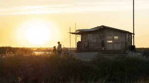 Alba (Cosette Silguero) y Manuela (Adriana Ugarte), junto a la cabaña en la que vive la segunda, en la serie de Atresmedia.