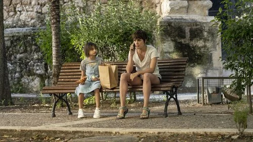 Alba (Cosette Silguero) y Manuela (Adriana Ugarte) comen en un banco en una de las escenas de la serie de Atresmedia.