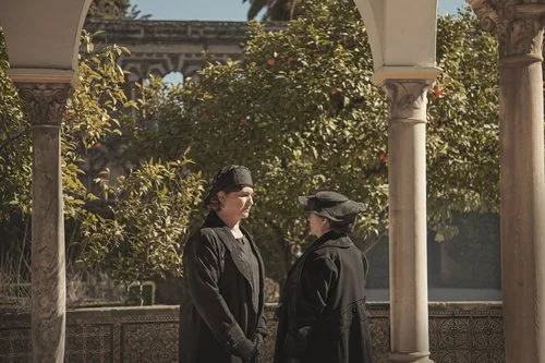 Ana Wagener, quien da vida a Luisa, mantiene una conversación con otra actriz durante el rodaje de 'La otra mirada'.
