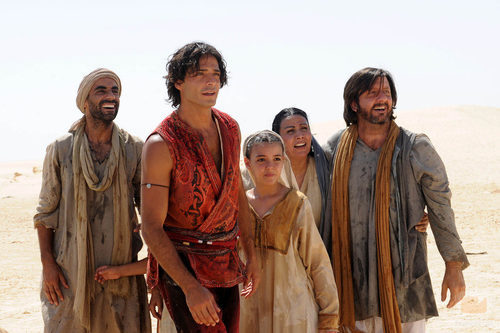 El actor Marco Bocci que interpreta a Aladino, en una escena en el desierto en 'Las mil y una noches' la nueva miniserie de Telecinco.