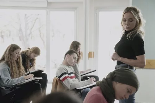 Laura Munar (Ángela Cremonte), la protagonista de 'Mentiras', imparte una clase de Literatura en 'Mentiras', de Antena 3.