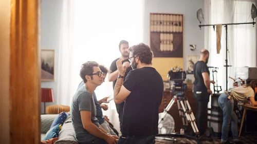 Berto Romero es Berto en 'Mira lo que has hecho'. El actor aparece sentado durante el rodaje escuchando las explicaciones.