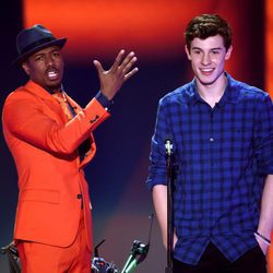 Nick Cannon y Shawn Mendes en los Nickelodeon's 28th Annual Kids' Choice Awards