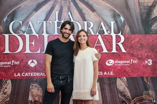 Los protagonistas principales de 'La catedral del mar', Aitor Luna y Michelle Jenner, juntos en la rueda de prensa.